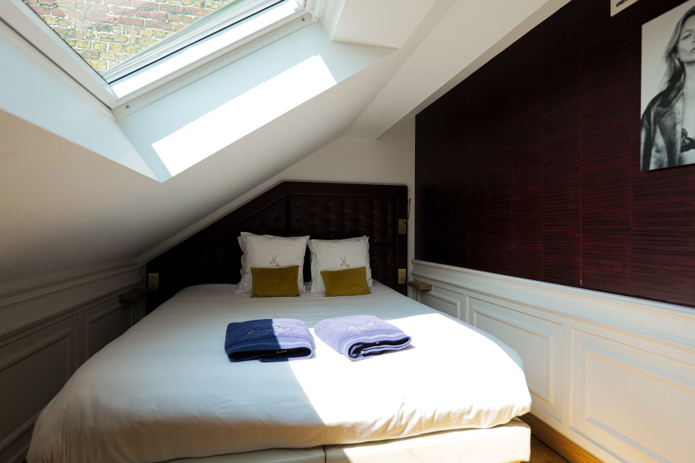 Découvrez notre chambre côté sud, un cocon chaleureux et apaisant, idéal pour un séjour tout en douceur. Dotée d’un grand lit double (160x200) et d’un design cosy avec un seul côté mansardé, elle allie confort et intimité. Profitez d’un espace soigneusement aménagé, parfait pour un moment de détente après une journée à explorer Dunkerque.